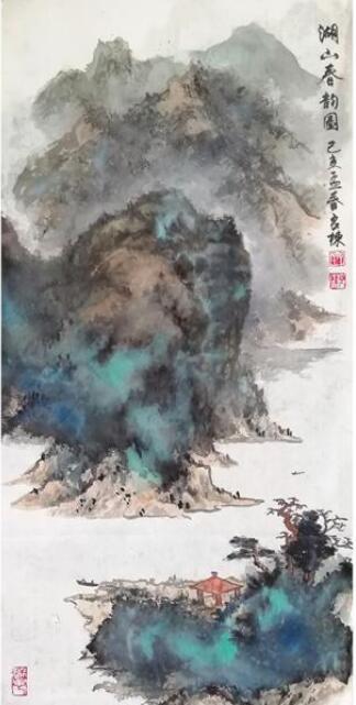 从山水作品内涵所溢透出的精气神来感悟,他的山水画传承脉络,由近及远追溯了近代张大千、清代石涛、明代倪瓒、元代黄公望、宋代郭熙、五代京浩这一脉文人画的源源主流,所以山水用墨极求明洁,简如春风,净如秋水,于大幅宣纸上构作翠山层叠,溪涧断崖,在水破墨,墨破彩的铺陈中,必成丘壑空远,峰峦秀涌,云霞万幻的神域境观!用水墨作底色,用青绿染生机,色不碍墨,墨不浊色,一透风骨,二透气韵,山水必然是境界雄迈而又性灵飘渺的迷人意象。